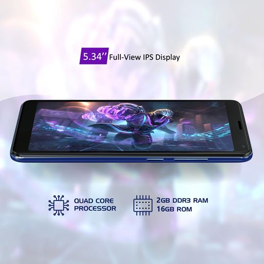 - 5.34-inch Full-View (18:9) FWVGA+ IPS Display with 2.5D Curved Glass